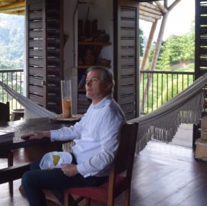 Gunter Pauli sitting at the place in La Miñoca where he wrote The Blue Economy